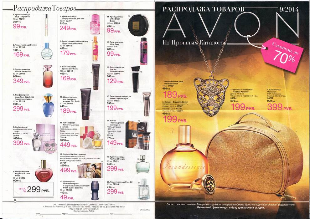 Перейти к оглавлению страниц Распродажа из прошлых каталогов Avon 9 2014